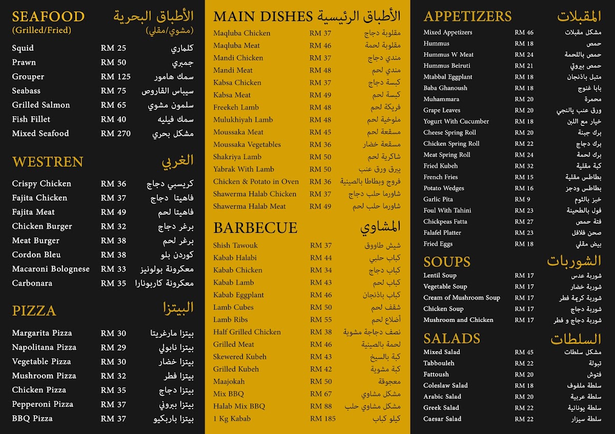 Telaga Halab Restaurant , المطعم السوري تلاقي حلب Menu